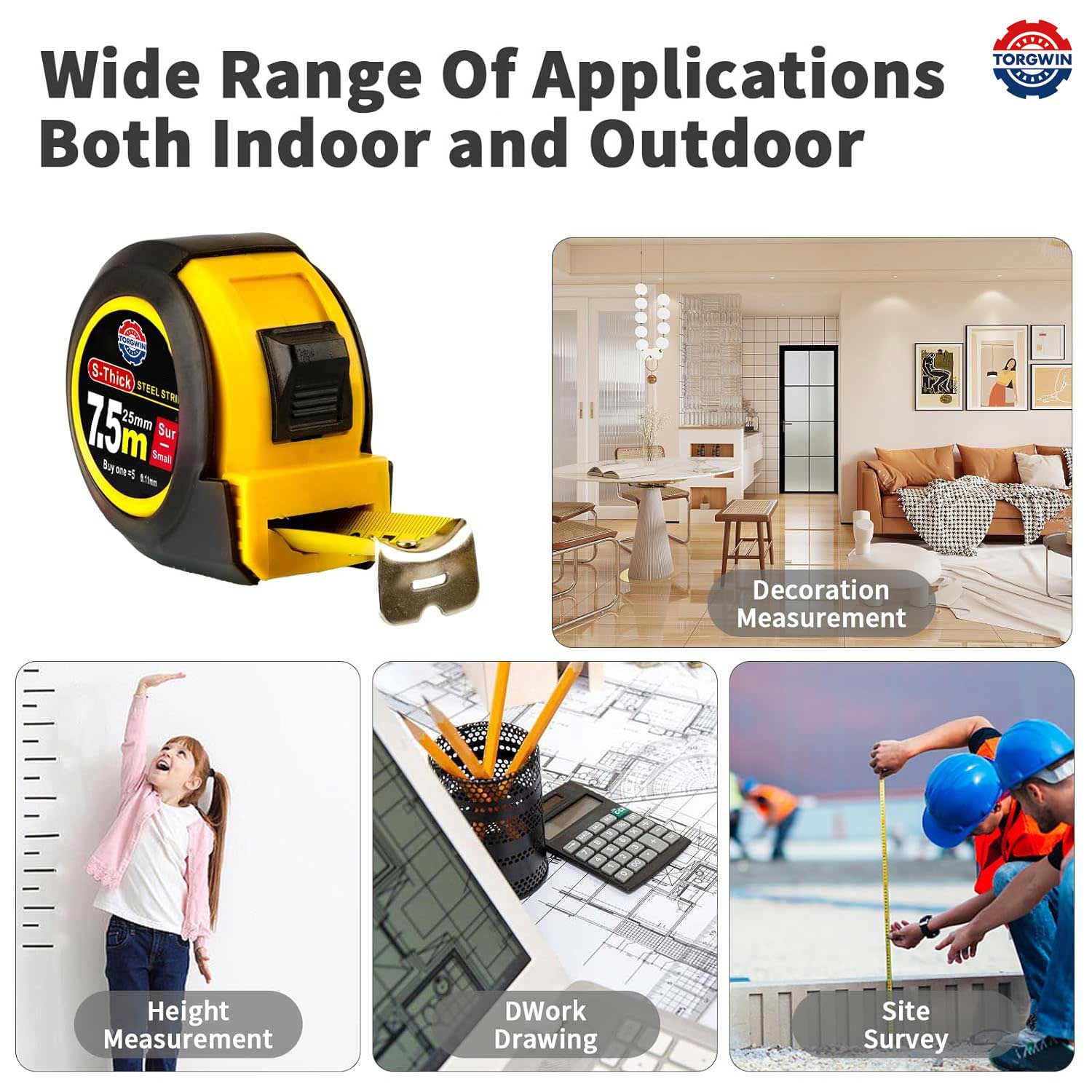1. 광범위한 응용 분야 - 실내 및 실외 :우리의 줄자는 다음을 포함한 다양한 작업에 적합한 다양한 도구입니다.